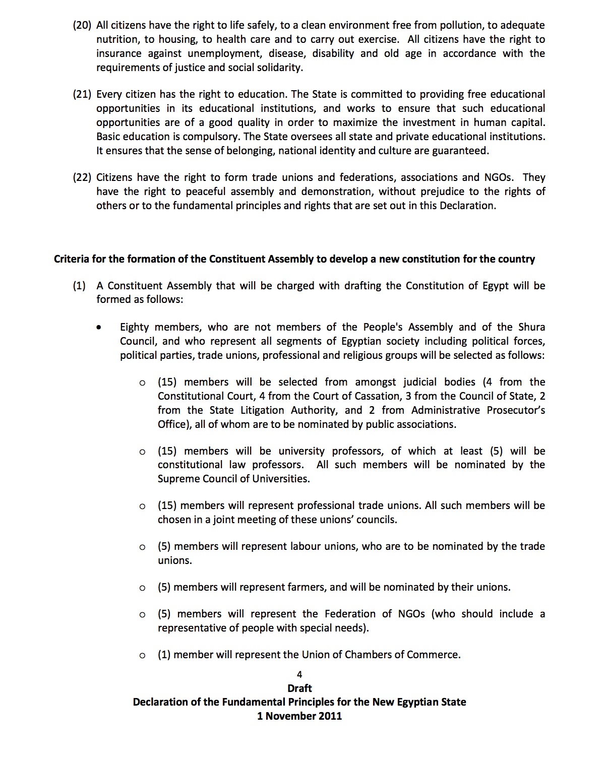4- A separate Egyptian Charter for Human Rights could be drafted, to be enshrined by the constitution.